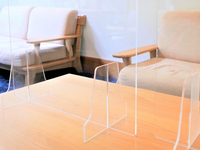 また、飛散防止につながる打合せルームや受付コーナーの卓上に飛散パネル設置も有効ですのでお勧めします。