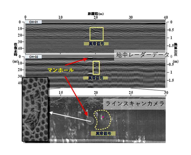 さらに原因を調査したところ、空洞が発生した付近に雨水管が埋設されていることが分かった。