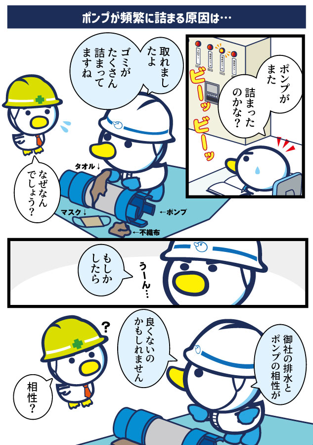 汚水の種類とポンプの相性が悪いといった原因があることも…。