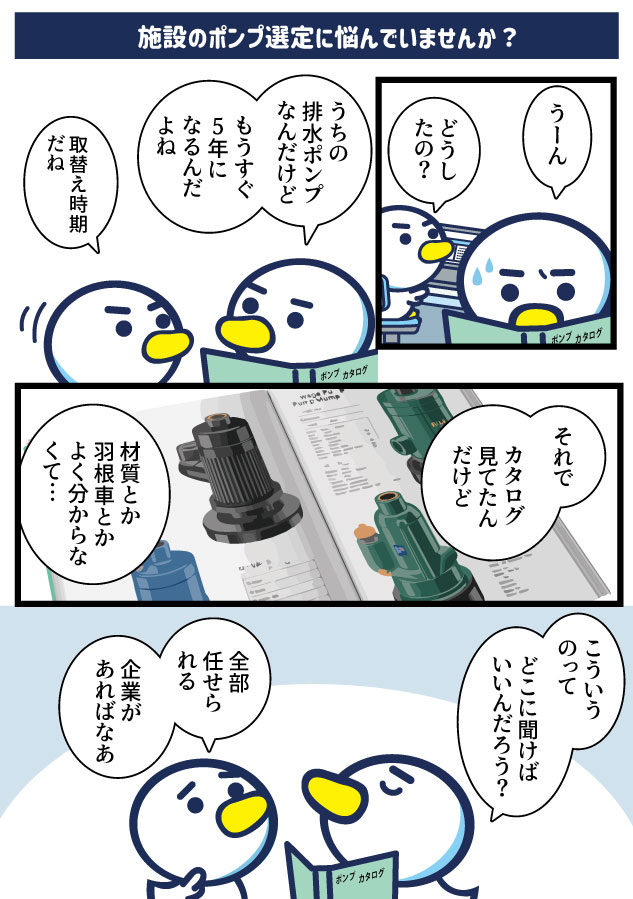 しかし「どの素材や羽根車を選べば、うちの施設の排水に本当に合うのだろう?」と迷ってしまう。
