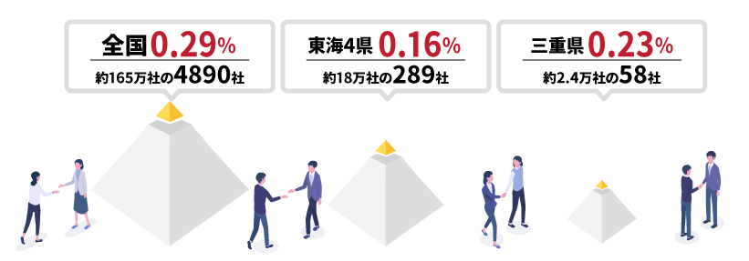 三重県では約2.4万社に対して58社(0.23%)